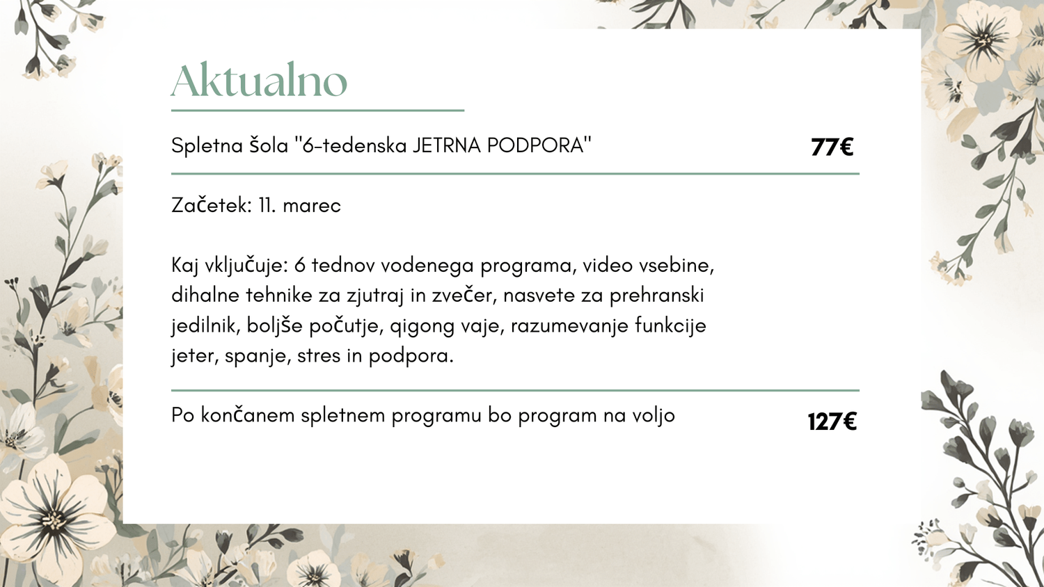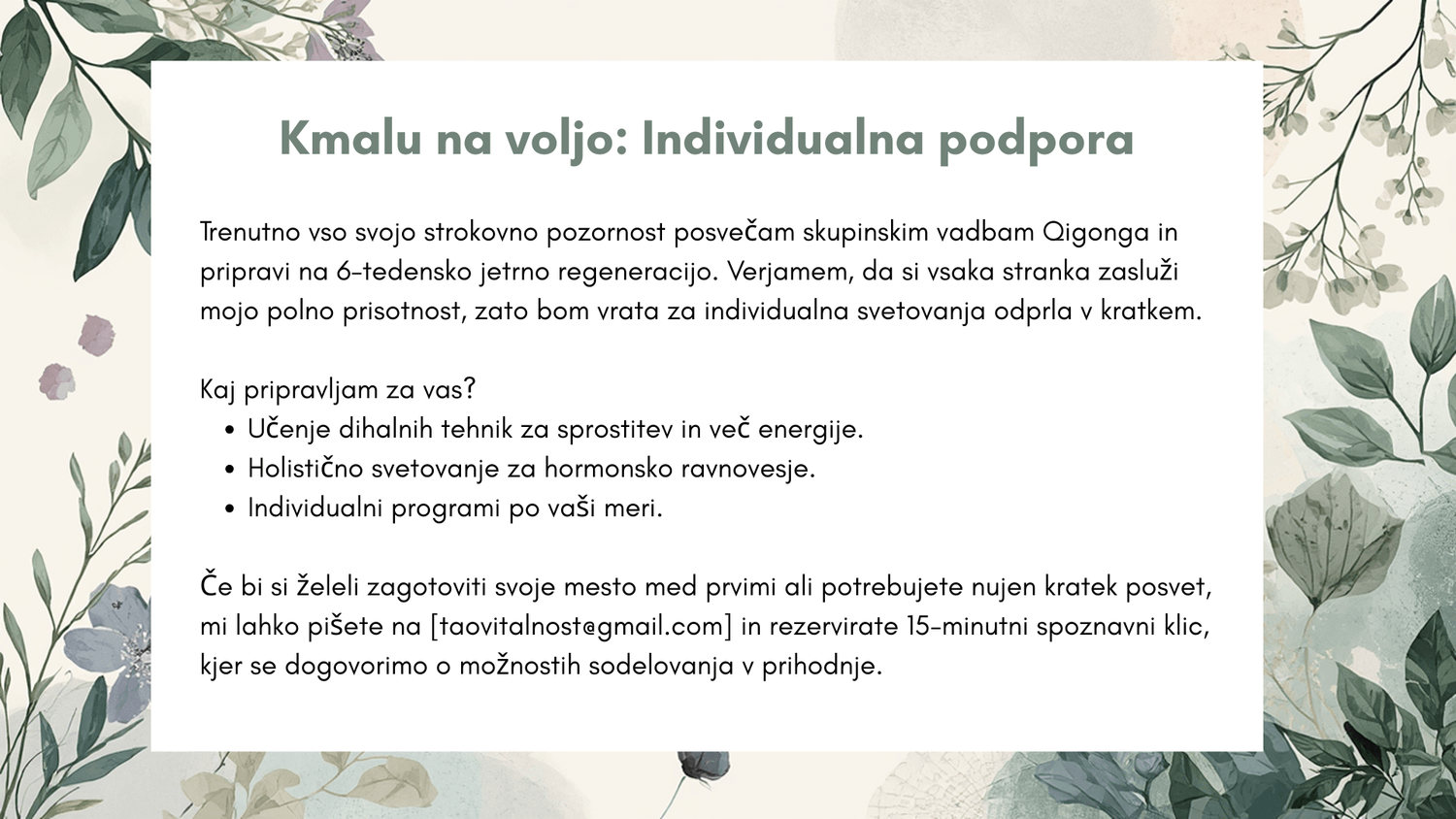 Podarim vam 15-minutni spoznavni klic, kjer skupaj najdeva vašo pot do vitalnosti.